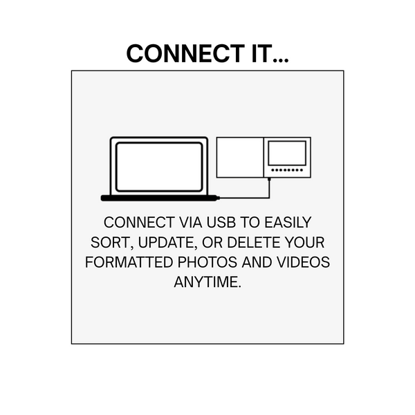 A: Yes of course! Loading photos onto the video book is just as easy as loading videos. The photos will play as a basic slideshow after your videos. We’d even recommend adding a .mp3 audio file so there is background music to your slideshow!